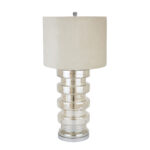 This is the Adonis Metallic Glass Lamp With Velvet Shade. An impressively proportioned table lamp with a luxe finish. From its ball topped cream velvet shade to its iridescent glass base, this lamp has a subtle glamour about it that will make it a stand out piece in any room.