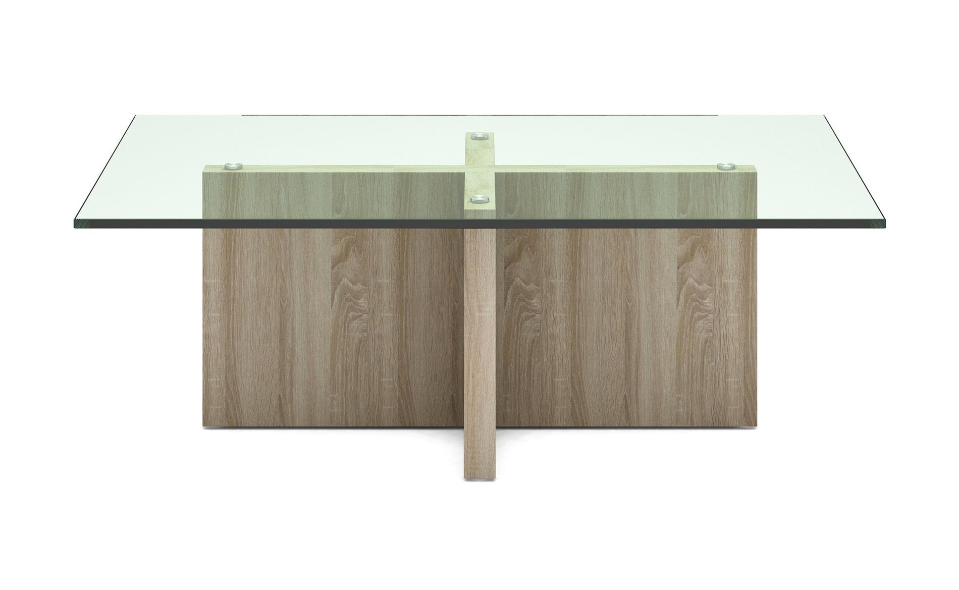 Details: The top is a 10mm thick tempered glass with Stainless Steel discs. The Base is engineered wood in a grey oak matte finish.