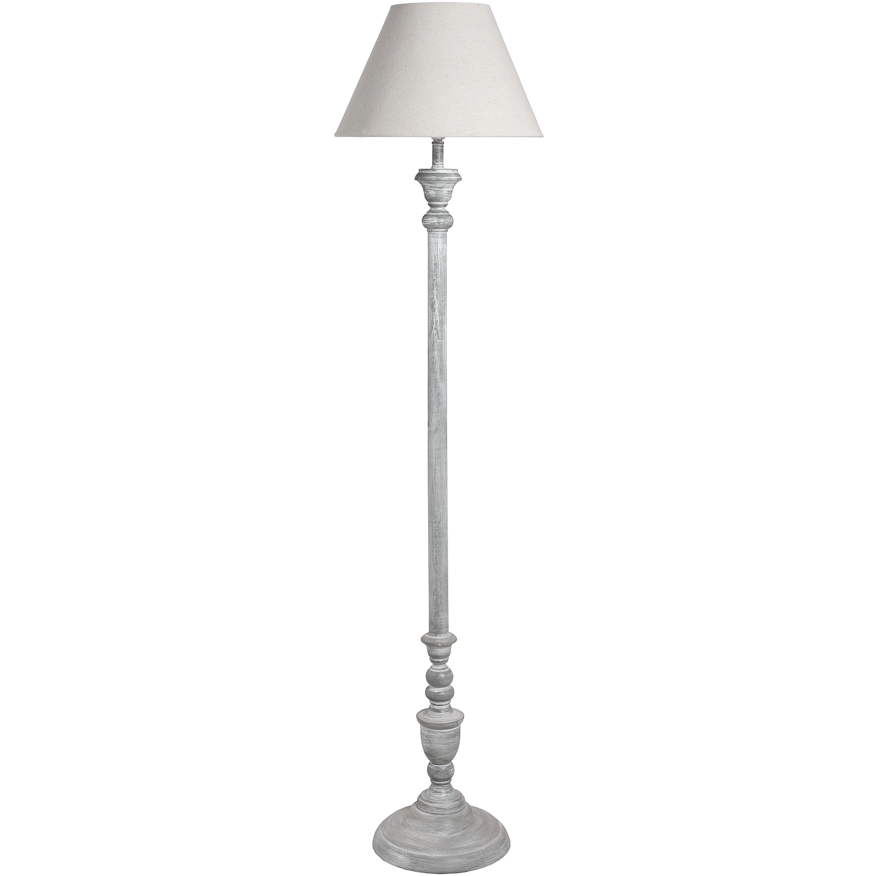 This is the Ithaca Floor Lamp, with a stylish grey, whitewashed base and a classic linen shade. Handcrafted to create its carved detailing, the lamp would feel at home in traditional, contemporary or cottage style interiors. E27 Screw Bulb required.