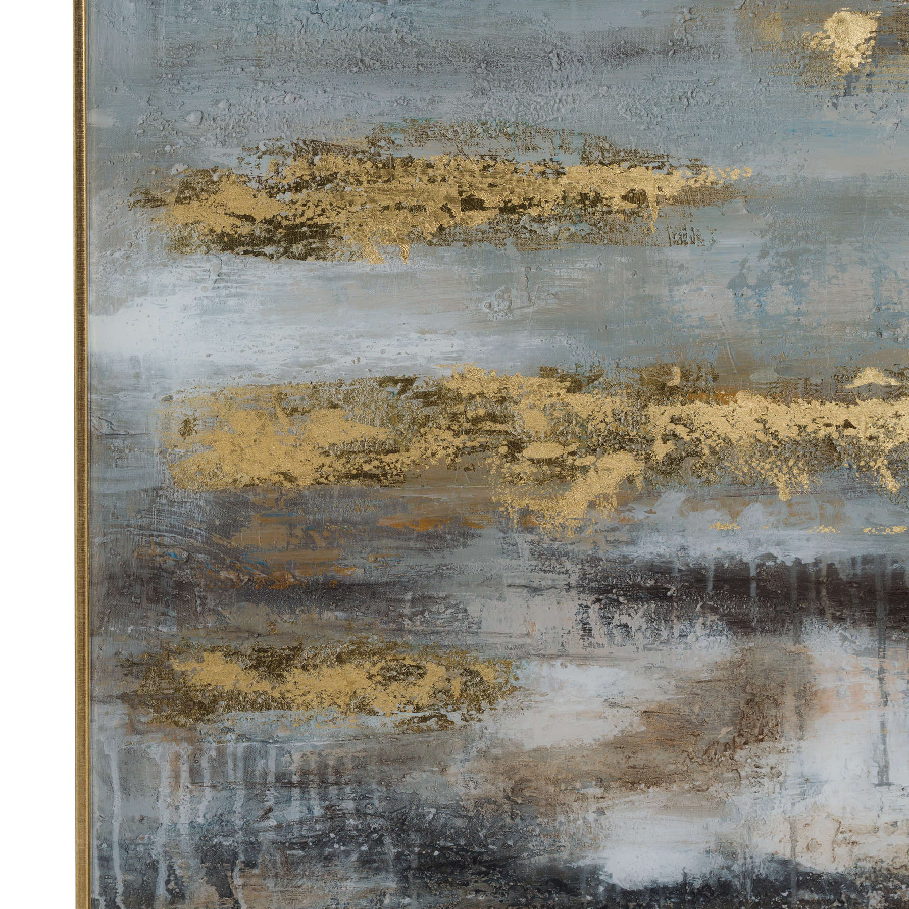 Large Abstract Grey And Gold Glass Image With Gold Frame