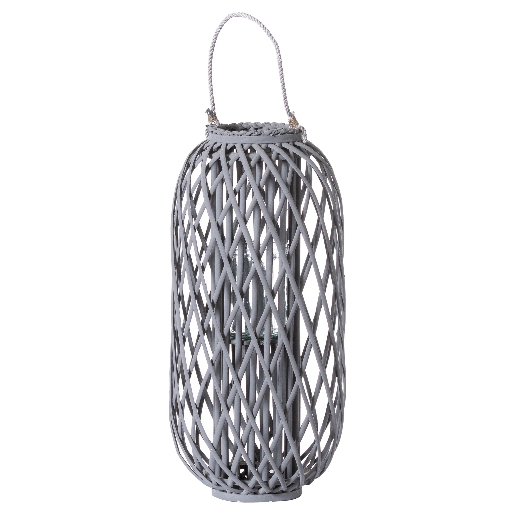 This is the Large Grey Standing Wicker Lantern. Add natural texture to your home with our wicker lantern range. These beautifully woven wicker lanterns have an earthy texture and on-trend grey finish that can be used to instantly add a relaxed, easy living feel to interiors. Perfect outdoors during the fine weather or bring indoors in the winter for a cosy vibe.