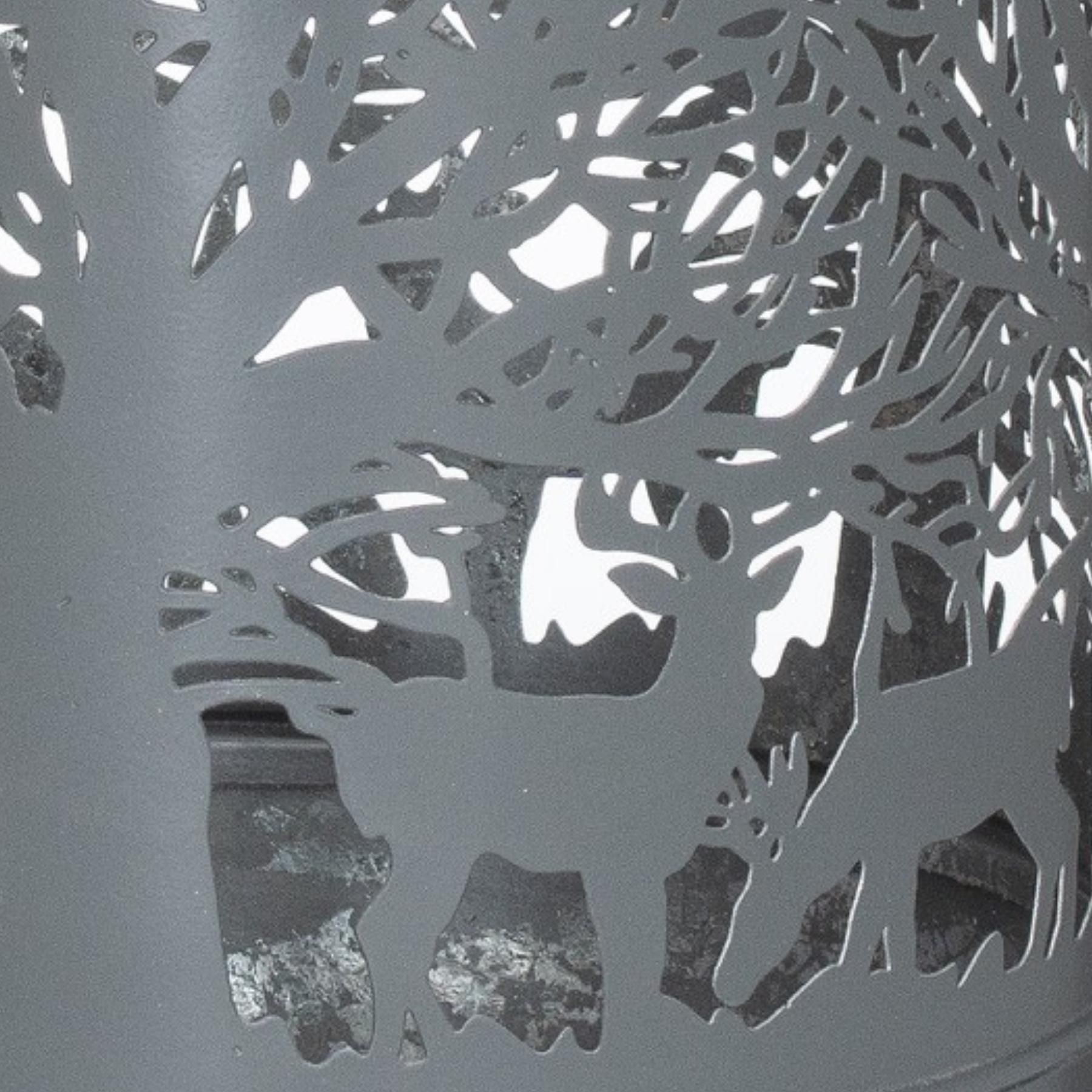 This is the Large Silver and Grey Glowrays Dome Forest Lantern. A stunning lantern with a metallic interior which shows its intricate cutwork pattern off beautifully. A perfect addition to add atmosphere and warmth to interiors and perfectly inkeeping with the enduring grey interiors trend. This lantern will look lovely alone or in combination with an array of others in the same finish. Add one of our real wax LED candles (sold separately) to finish the look.