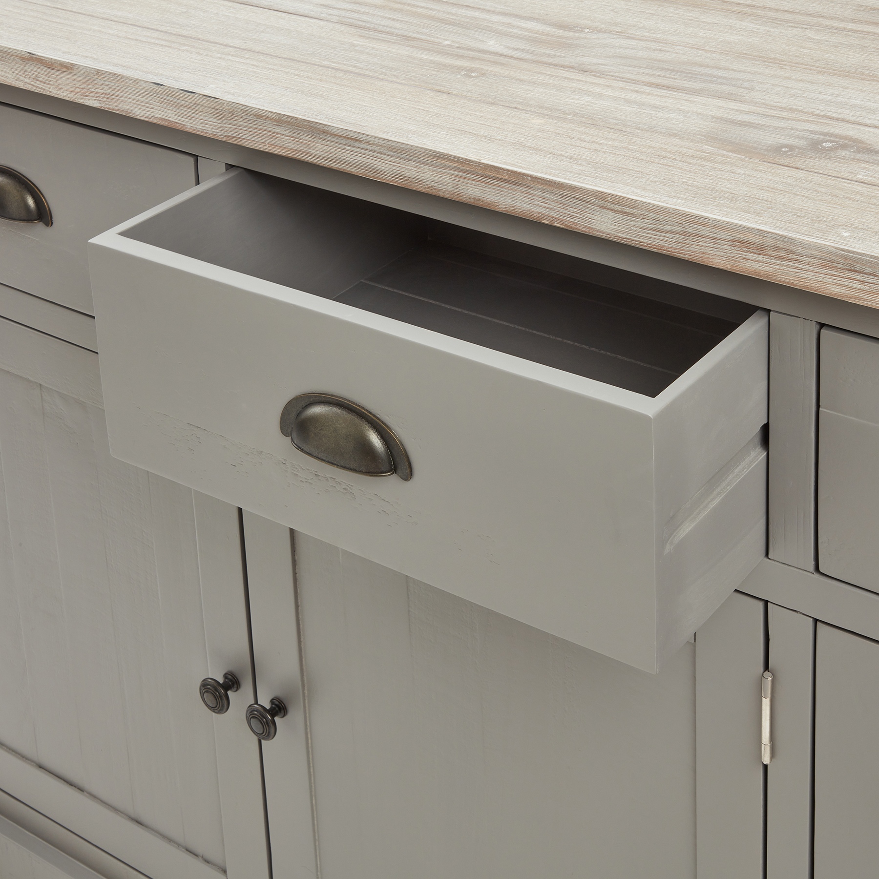The Oxley Collection Sideboard is perfect for display as well as storage. A washed wood plank surface blended with a body in a warm grey hue deliver a relaxed, informal feel to any space. Stylish as well as functional, this high quality item would be equally at home in traditional and contemporary styled spaces. Style with a couple of lamps to really highlight its beauty.