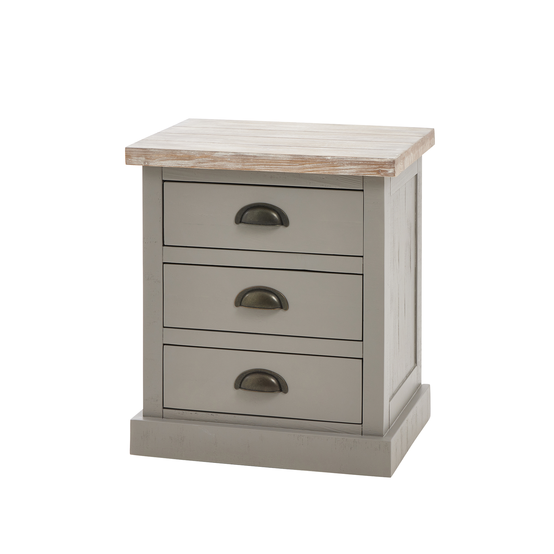 The Oxley Collection Bed Side boasts three useful drawers, perfect for keeping its washed wood surface clutter free and providing the space needed for a bed side lamp and other essentials. Stylish as well as functional, this bedside table will provide the perfect, useful finishing touch to the bedroom.