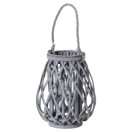 This is the White Floor Standing Domed Wicker Lantern With Rope Detail. Beautiful in its simplicity, this item picks up on a trend for natural sustainable materials and ‘new neutrals’. This wicker lantern encases a glass candle-holder which we recommend filling with one of our amazingly realistic real-wax LED candle collection rather than real flame alternatives. These items come in three sizes which look great displayed together.
